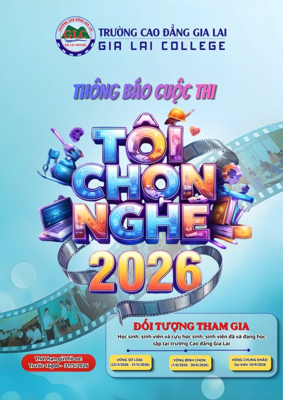 THÔNG BÁO CUỘC THI: “TÔI CHỌN NGHỀ 2026” 🎬✍️ Bạn tự hào về ngành học mình đã chọn? Bạn có những kỷ niệm vô giá tại mái trường Cao đẳng Gia Lai (GLC)? Hãy để những thước phim và con chữ của bạn lên tiếng! Trường Cao đẳng Gia Lai chính thức phát động cuộc […]