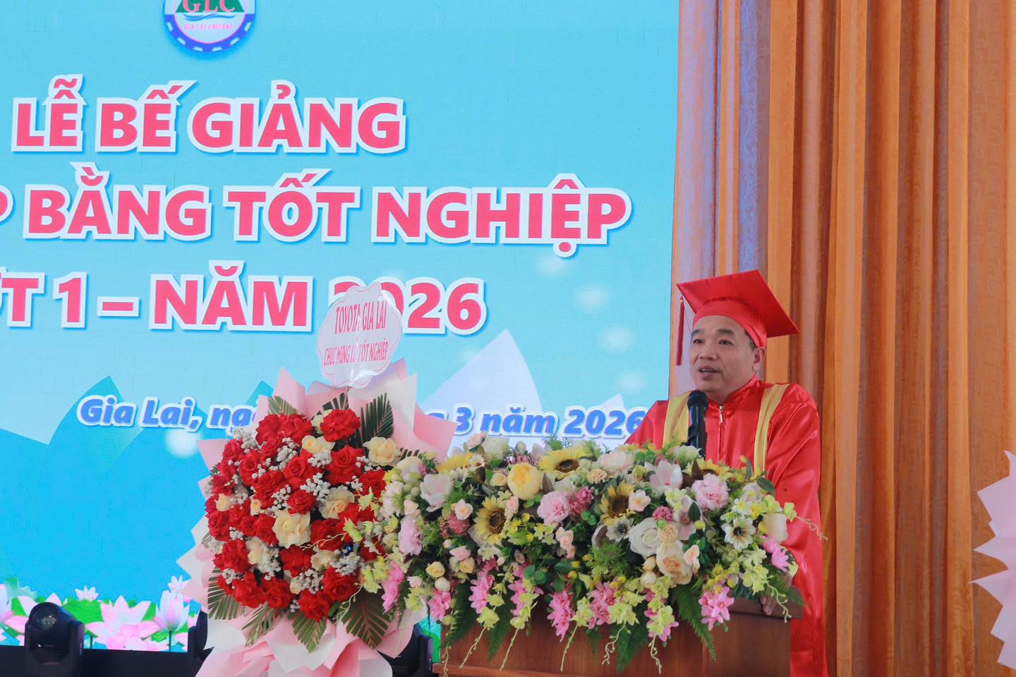Sáng ngày 18/3/2026, tại Hội trường Trụ sở chính, Trường Cao đẳng Gia Lai đã long trọng tổ chức Lễ bế giảng và trao bằng tốt nghiệp đợt 1 năm 2026 cho hơn 150 sinh viên hệ cao đẳng thuộc các khoa: Điện – Công nghệ thông tin, Công nghệ ô tô, Cơ khí – Xây dựng, Nông Lâm và Nghiệp vụ – Du lịch.
