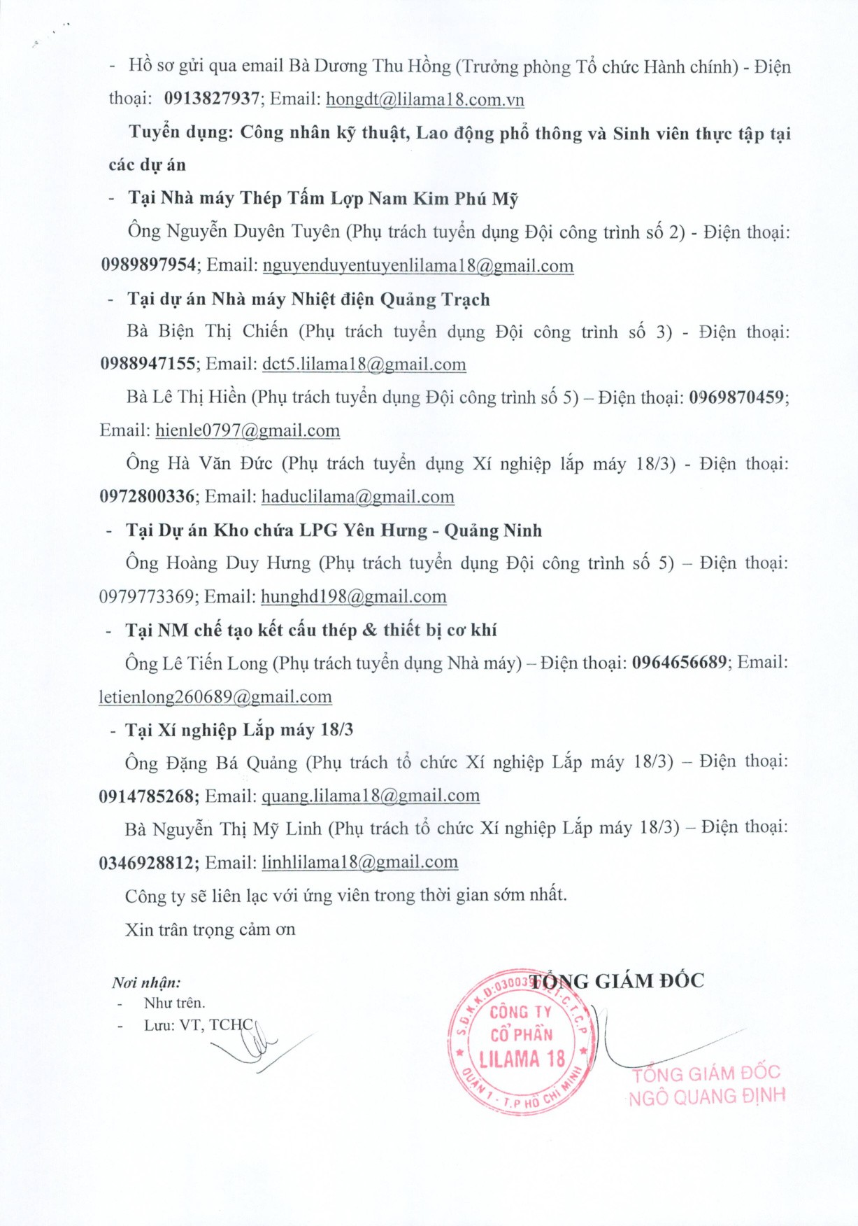 THÔNG BÁO TUYỂN DỤNG 350 LAO ĐỘNG – CÔNG TY CỔ PHẦN LILAMA 18